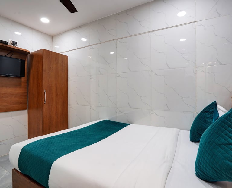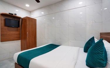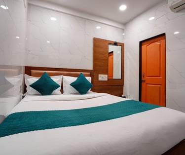 Experience the perfect blend of style and comfort in our Deluxe Room. Featuring contemporary decor, this room offers a serene escape from the city hustle. Enjoy a plush Queen-size bed, a dedicated workspace, and a spa-inspired bathroom designed for ultimate relaxation.